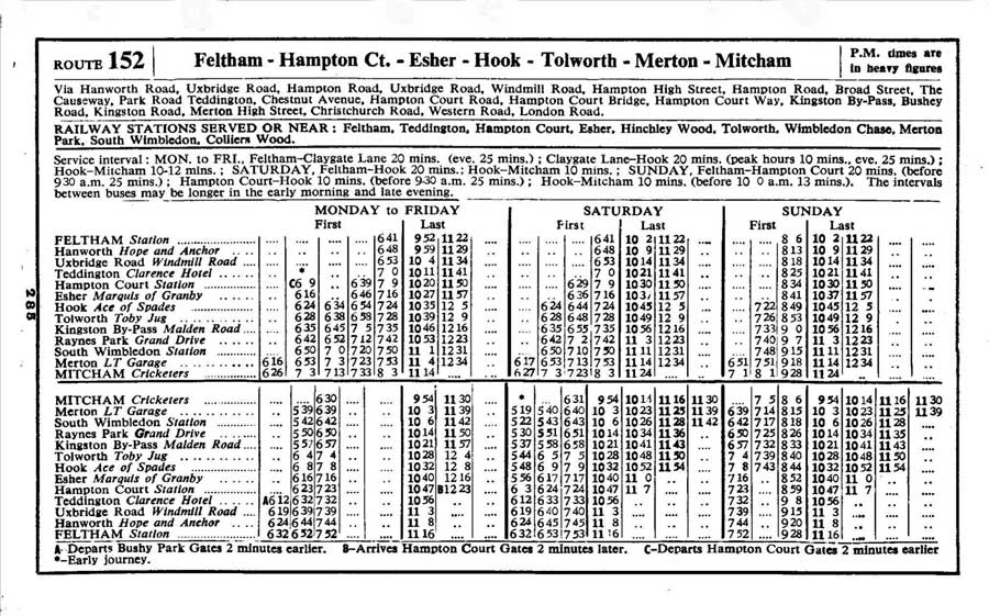 MITCHAM - HAMPTON COURT ( Mon-Fri evgs / Sat / Suns ) - TEDDINGTON ( Mon-Fri daytime ) - FELTHAM ( Mon-Fri peaks)