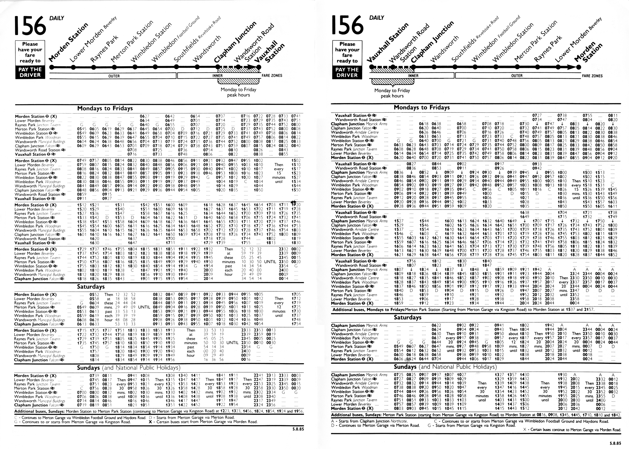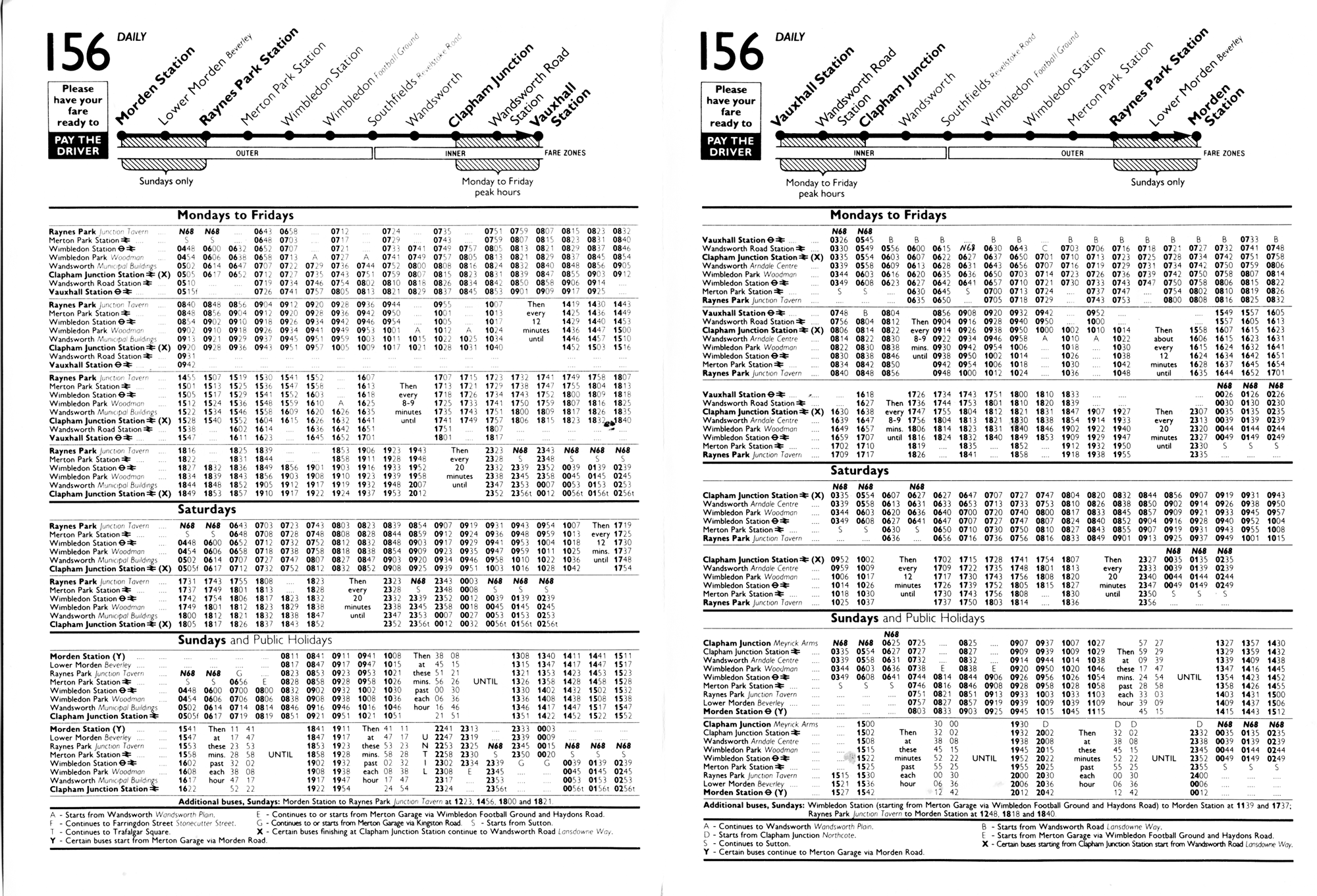 MORDEN (Suns) - RAYNES PARK ( Mon-Sat ) - CLAPHAM JUNCTION ( Mon-Sat ) -WANDSWORTH
