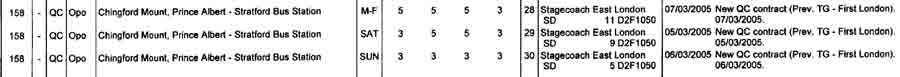 moved fromLeyton (T) to West Ham (WH) to partly fill gap left by Route 25 which went to First