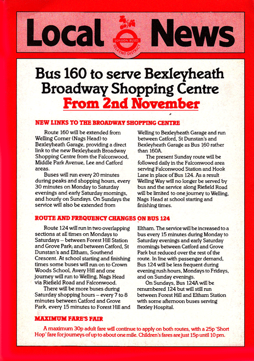 Extended from Welling to Bexleyheath Garage and introduced on Sunday replacing Route 160A