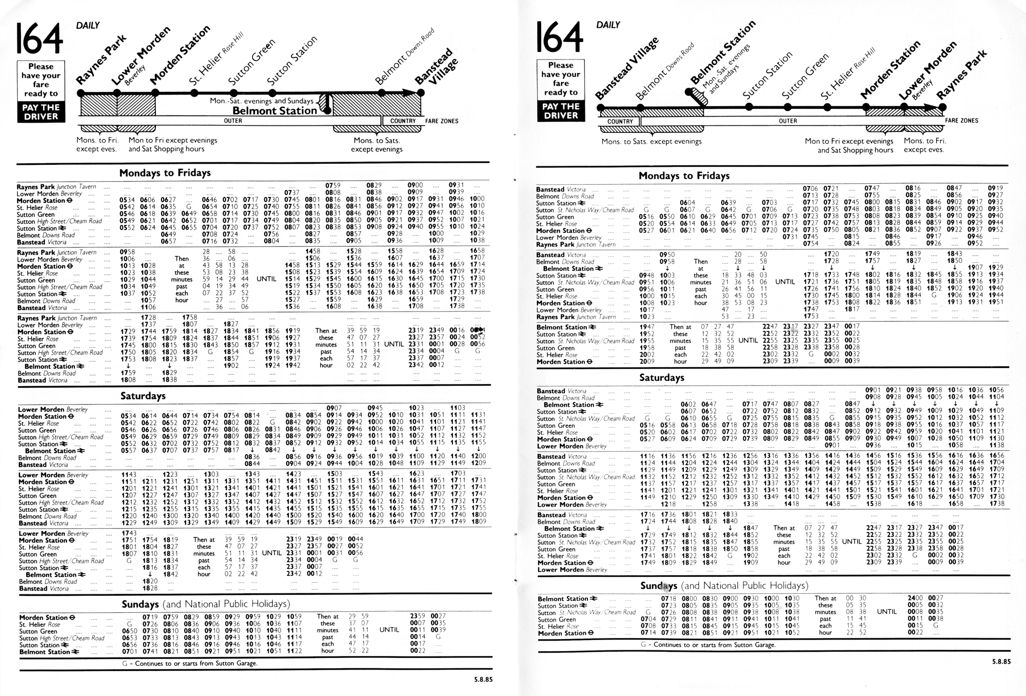 MORDEN Beverly ( Mon-Sat ) Hillcross Avenue - MORDEN STATION (Suns) - BELMONT (Mon-Sat evgs/Suns) - BANSTEAD (Mon-Sat except evgs)
