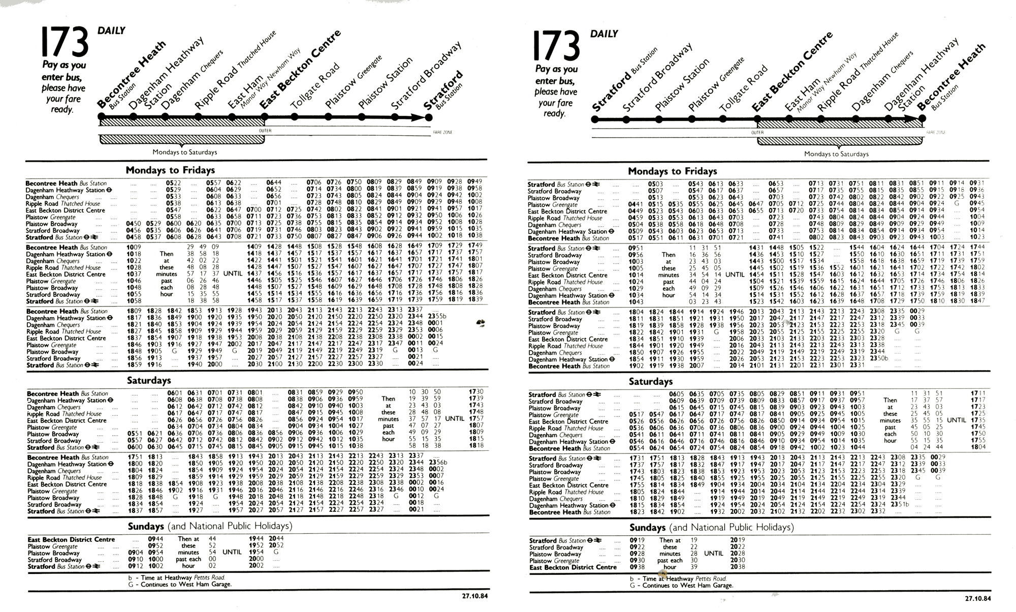 STRATFORD ( Mon-Sat ) - E BECKTON (Suns) - Little Heath - Barley Lane - GOODMAYES