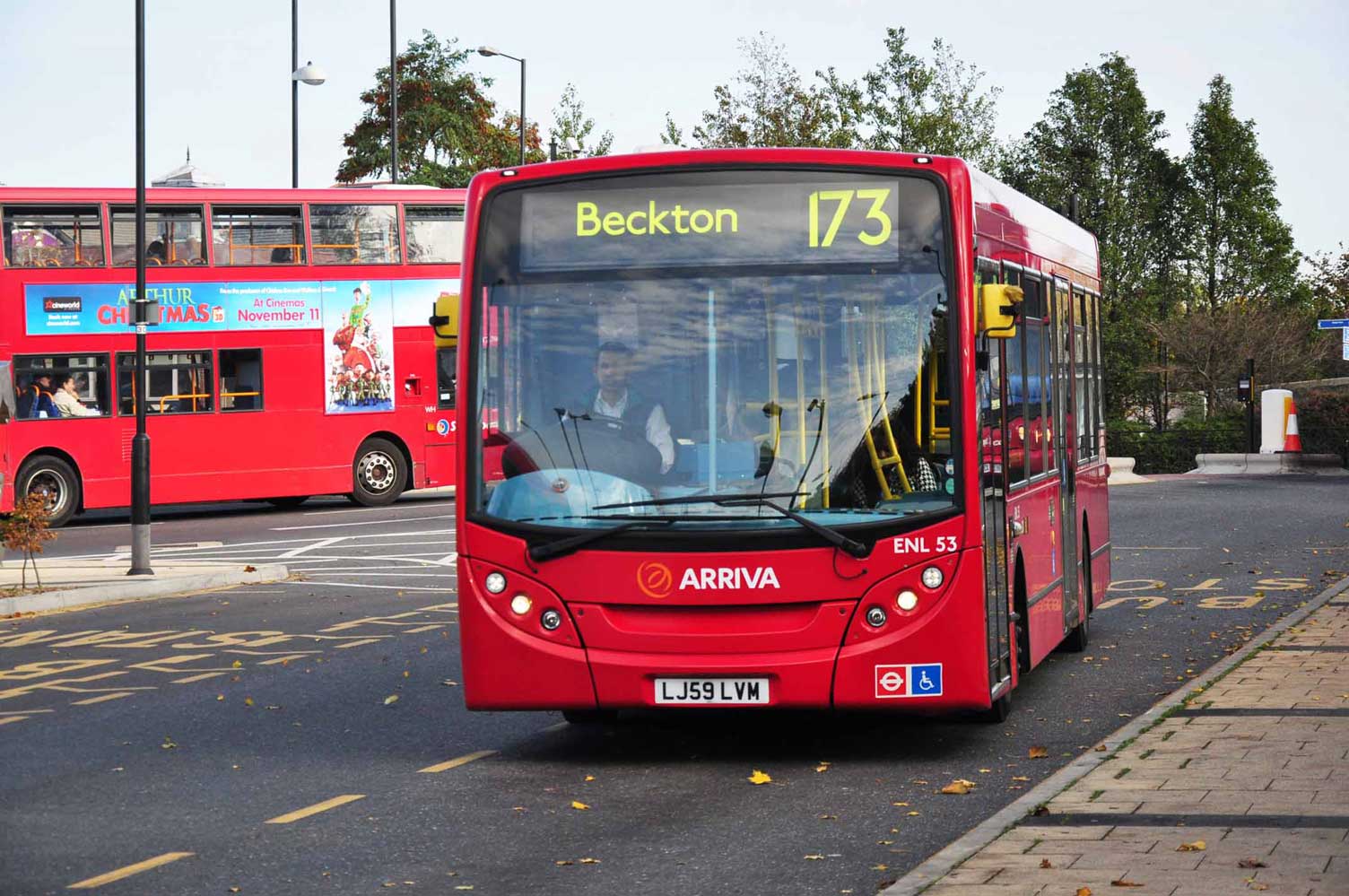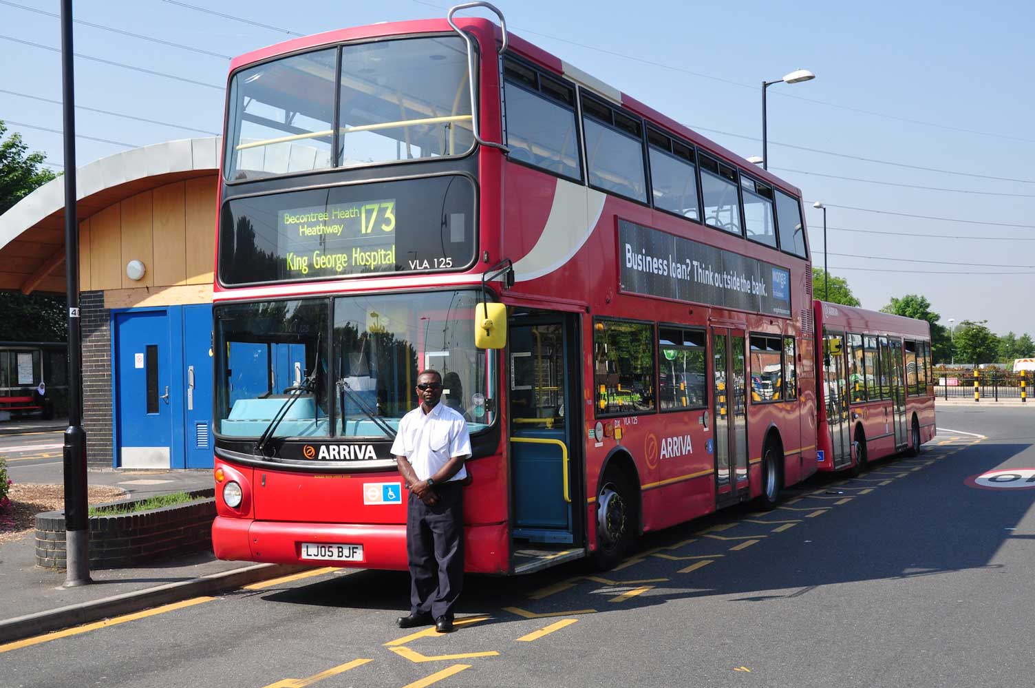 VLA125 poses with the driver at Beckton Station. Occasionally a double decker replaces the usual Dart.