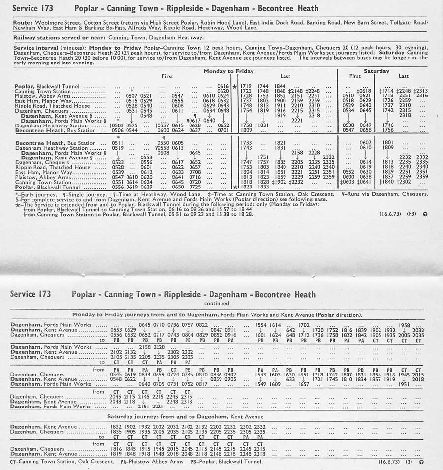 Changeover point moved to Becontree Heath although on Sundays all reliefs start/finish at Barking Garage