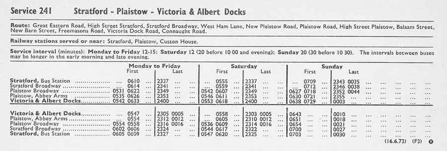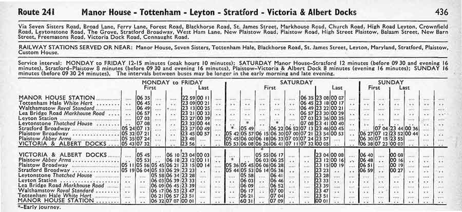 & ALBERT DOCKS - STRATFORD BROADWAY (Suns) - MANOR HOUSE STATION (Mon-Sat)