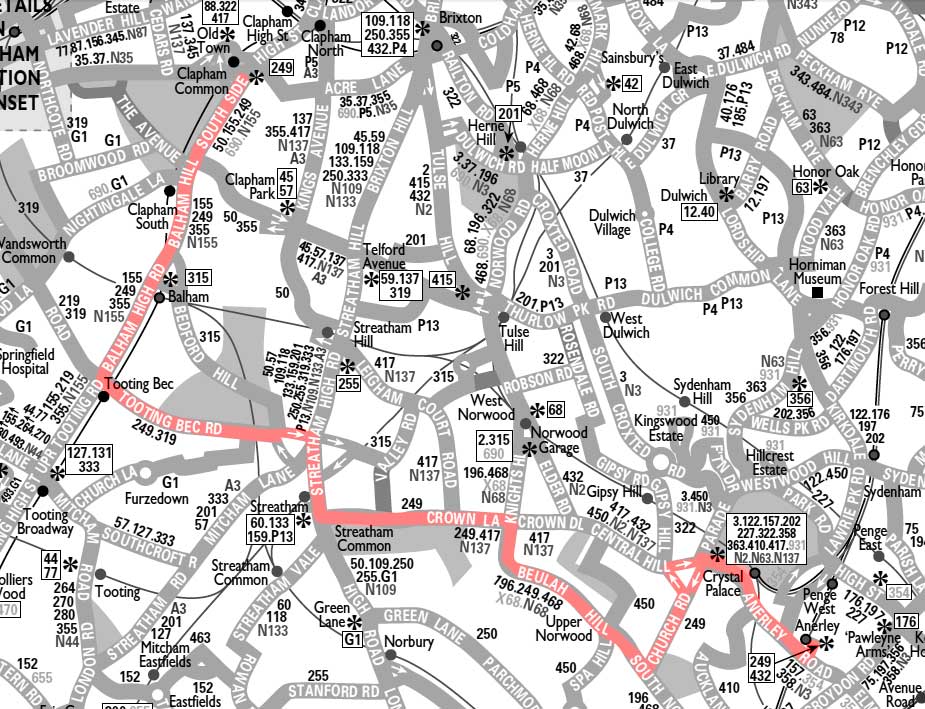 PALACE - Church Road - Beaulah Hill - Crown Point - Streatham Common - TOOTING BEC STN ( Mon-Sat )
