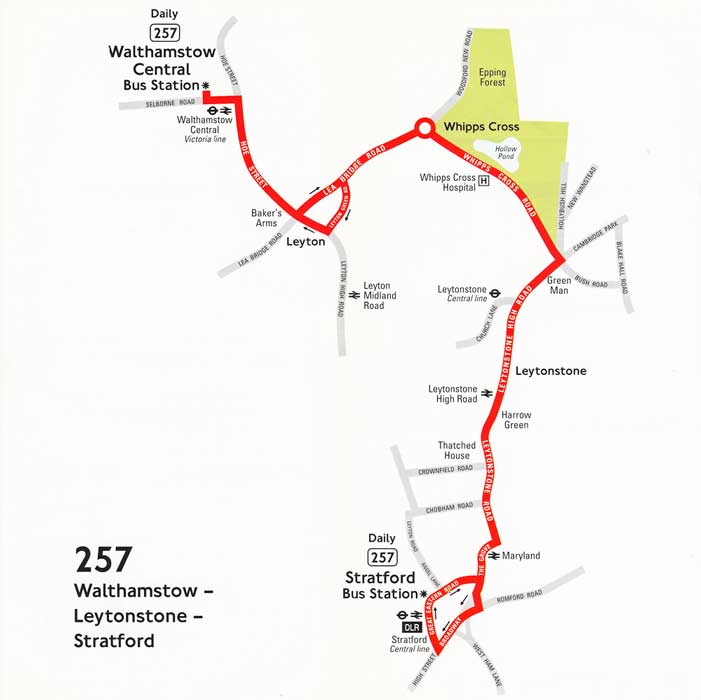 Leytonstone High Road - Whipps Cross - Bakers Arms - Hoe Street - WALTHAMSTOW