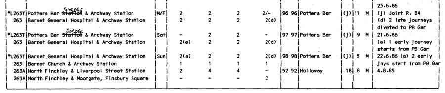 south of Archway Station but extended north of Barnet to PB Garage (Suns)