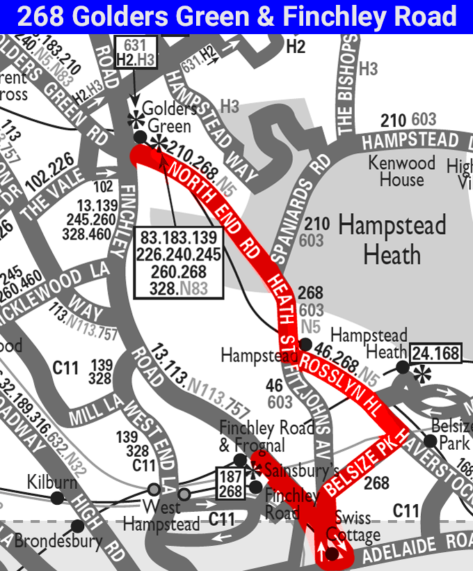 High Street Hampstead - Rosslyn Hill - Belsize Avenue - Belsize Park - Buckland