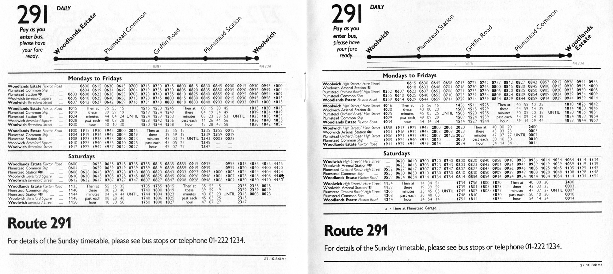 Changeover point Woolwich Centre towards QEH and Calderwood Street towards Woodlands Estate