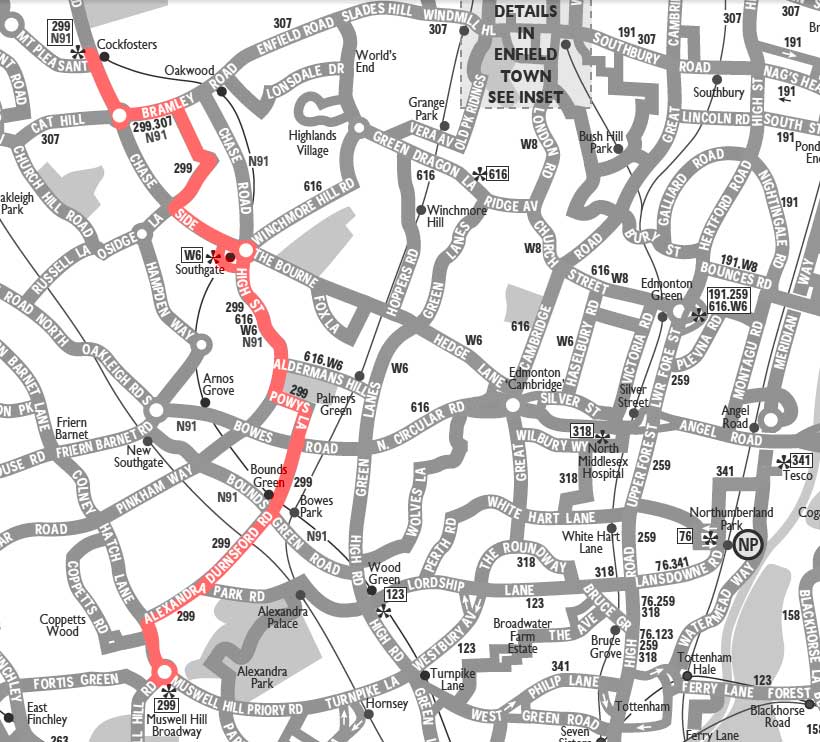 Cannon Hill - Powys Lane - Brownlow Road - Bounds Green - Durnsford Road - MUSWELL