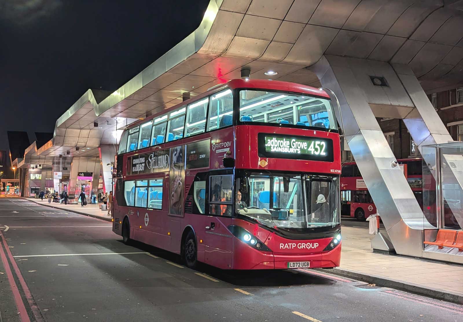 Due to congestion at Kensal Rise stand route 452 will be curtailed to terminate at Ladbroke Grove, Sainsbury's. Buses will then proceed to Westbourne Park Garage out of service for stand, meal relief and driver crew change.