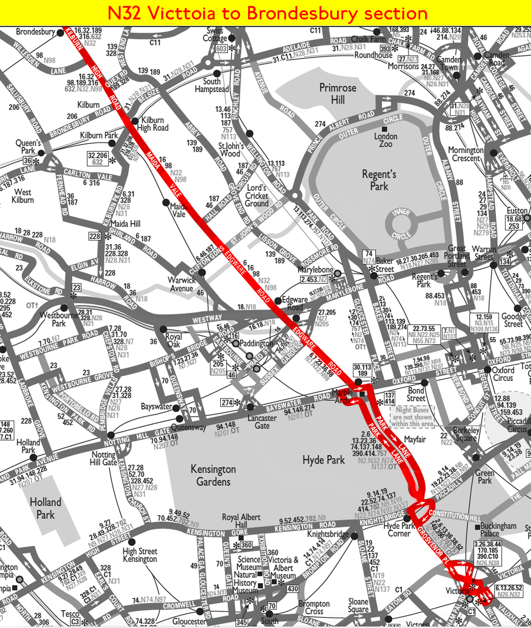 EDGWARE STATION - Burnt Oak - Colindale - West Hendon - Cricklewood - Kilburn - Maida Vale - Edgware Road - Marble Arch - Park Lane - Hyde Park Corner - VICTORIA STATION