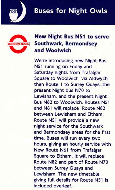 NEW NIGHT ROUTE Fri/Sat Nights only