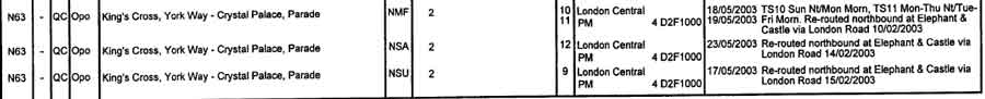 Changeover point n/a. buses ex63 usually change number at Crystal Palace after being in service on 363