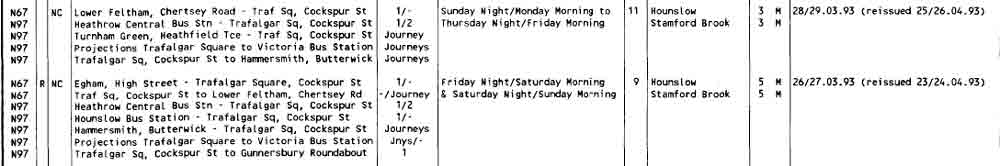 Scanned from night bus leaflet dated January 1991 |