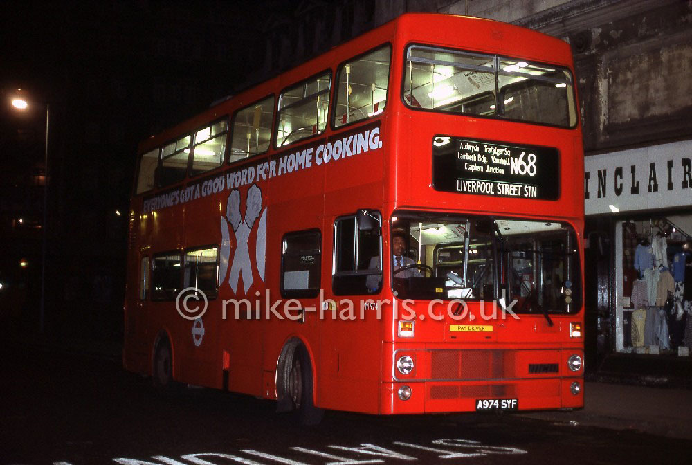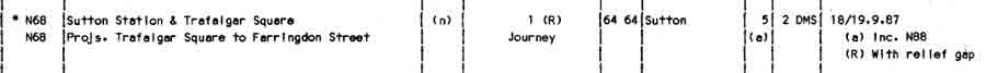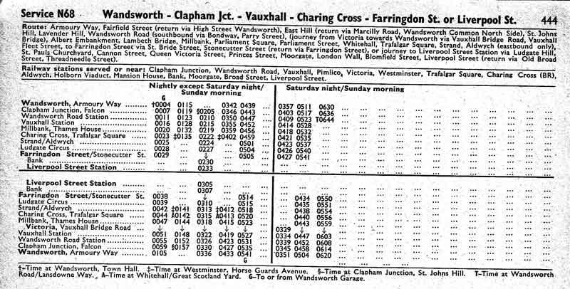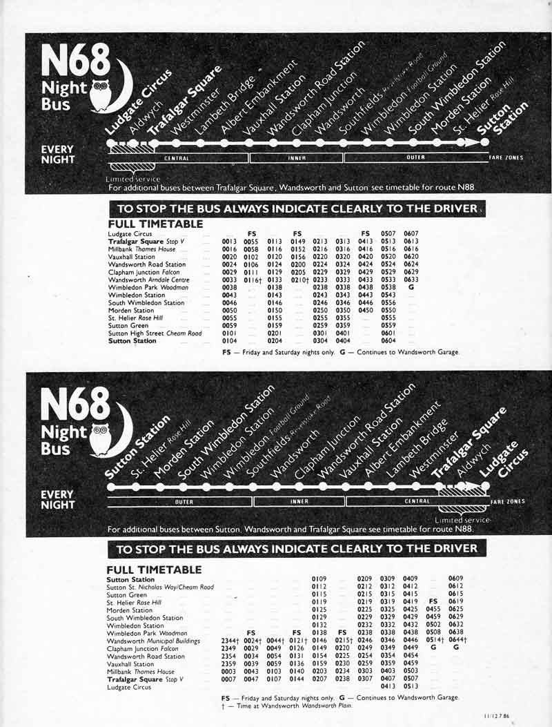 The night service on Route 168 was diverted via Trafalgar Square and Aldwych instead of Victoria Embankment therefore renumbered N68