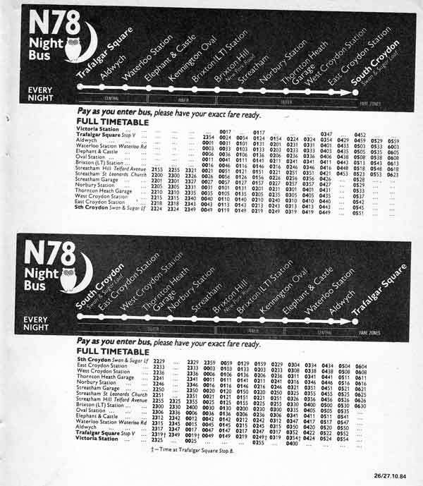 VICTORIA GARAGE ( meal relief journeys ) - TRAFALGAR SQUARE - SOUTH CROYDON Swan & Sugar Loaf ( Nightly )