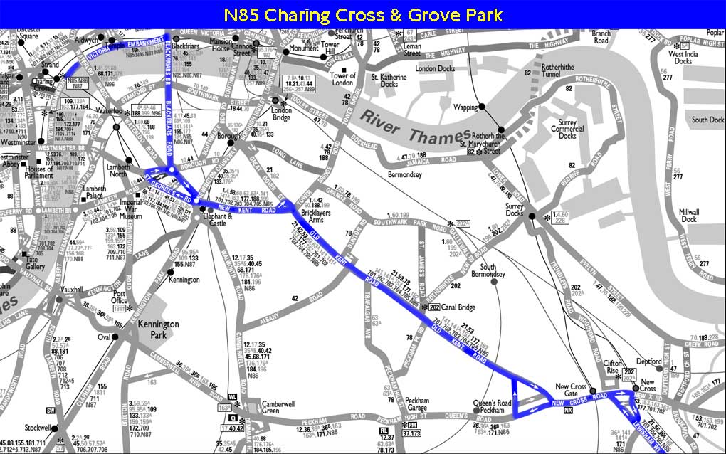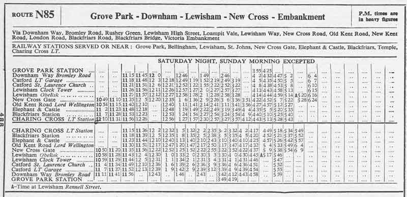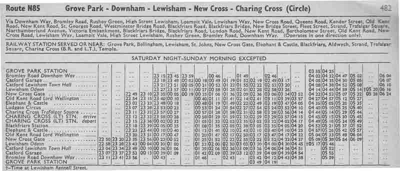 GROVE PARK - CHARING CROSS LT Stn - GROVE PARK ( Sun-Fri nights )