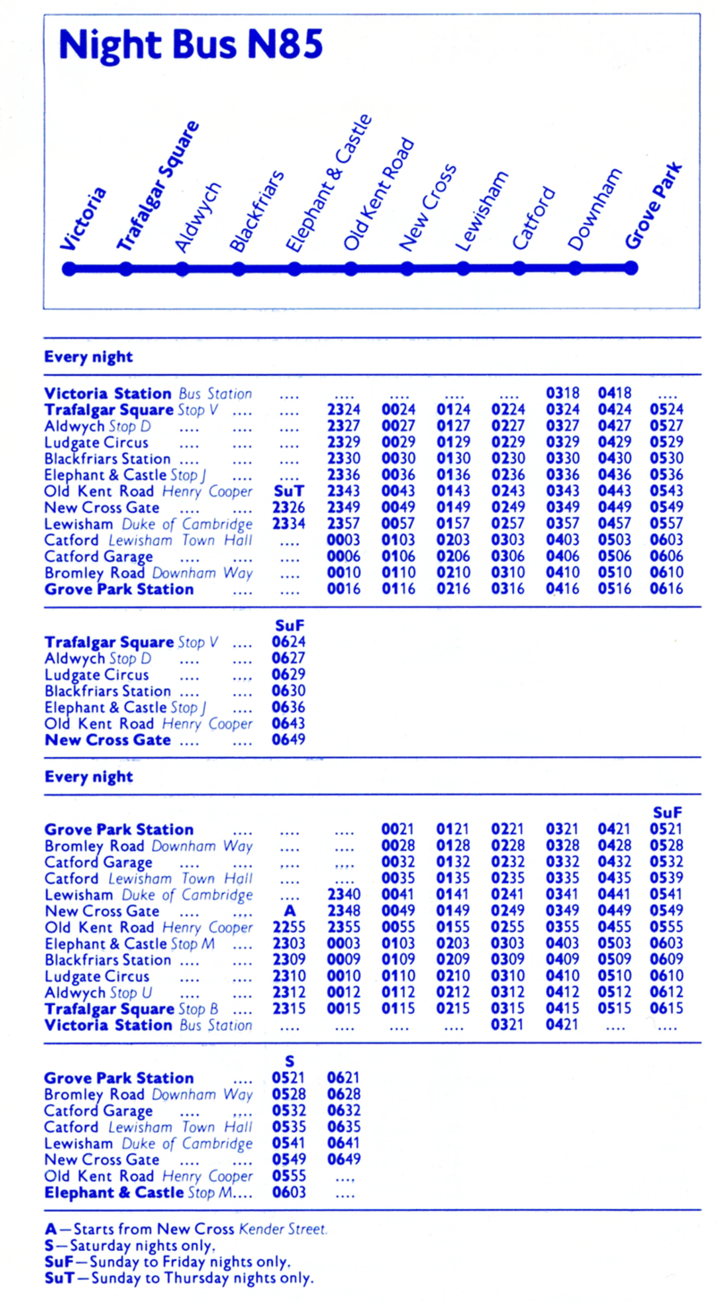 VICTORIA BUS STATION ( Meal Reliefs ) - TRAFALGAR SQUARE - GROVE PARK