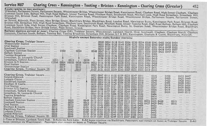 TRAFALGAR SQUARE - Westminster Bridge - Oval - Stockwell - Clapham - Tooting - Southcroft Road - STREATHAM GARAGE