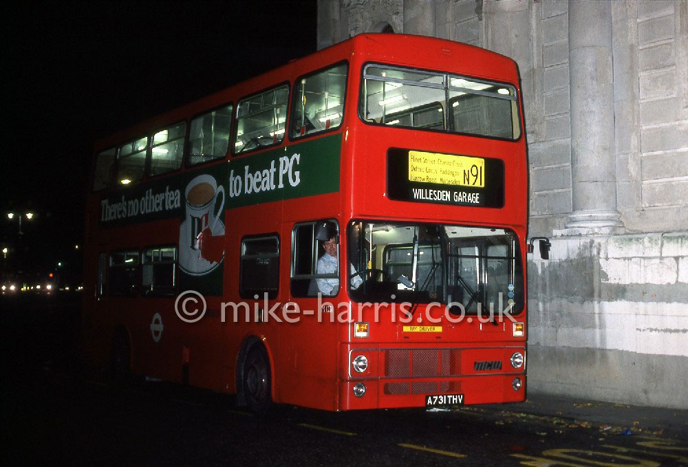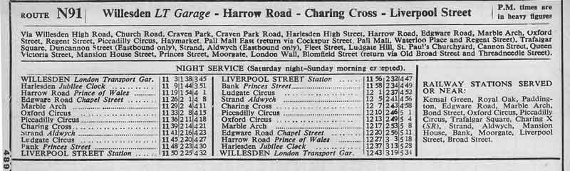 WILLESDEN GARAGE - LIVERPOOL STREET ( except Saturday night )
