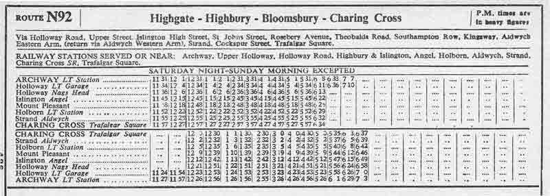 This Route was previously numbered 292 but was part of a scheme to renumber all night routes in the "N" series to make available the numbers for the trolleybus replacement routes although this number remained vacant until 1962 and was used for a local route in the Edgware area that was part of the trolleybus replacement program