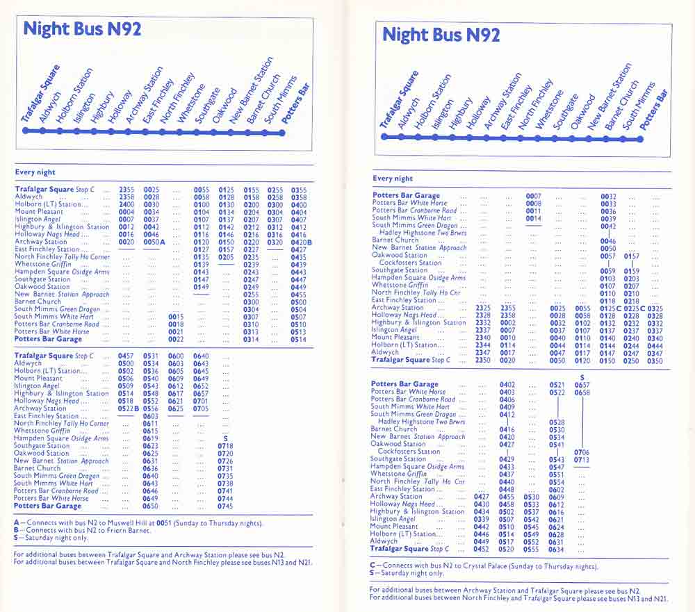 Extended via Route 17 from Archway to North Finchley and then withdrawn N80 to POTTERS BAR GARAGE