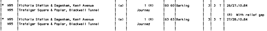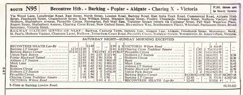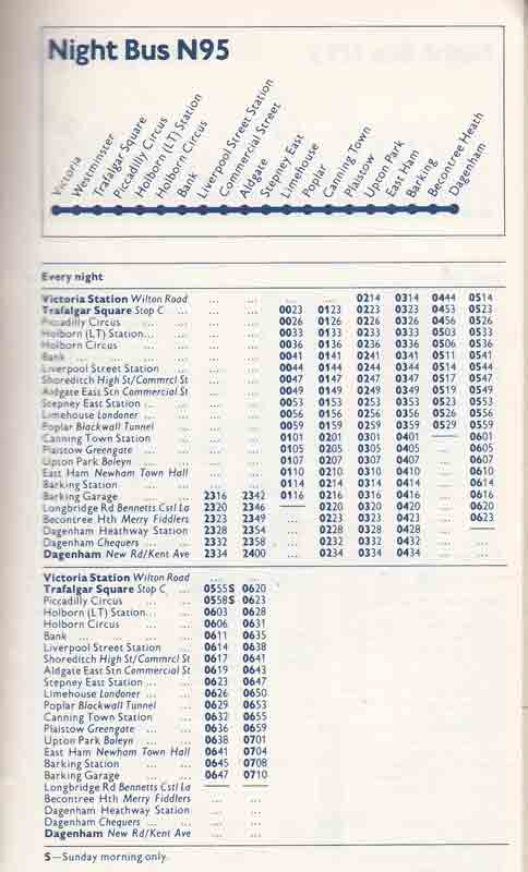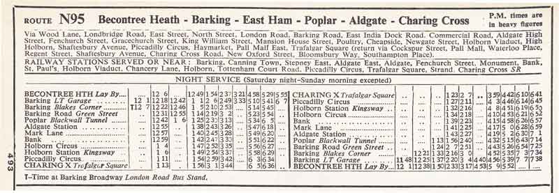 This Route was previously numbered 295 but was part of a scheme to renumber all night routes in the "N" series to make available the numbers for the trolleybus replacement routes although this number remained vacant until 1967 and was used for a local route in the Shepherd's Bush area