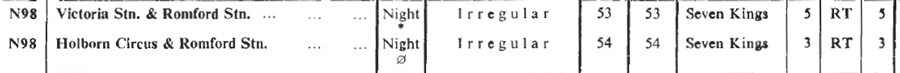 ROMFORD STATION ( Nightly ) - HOLBORN CIRCUS ( Sat night ) - VICTORIA ( Sun-Fri nights )