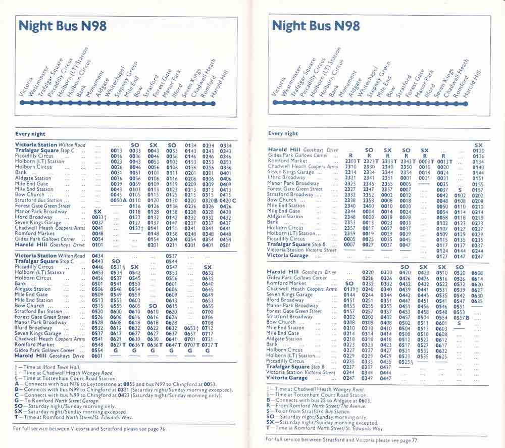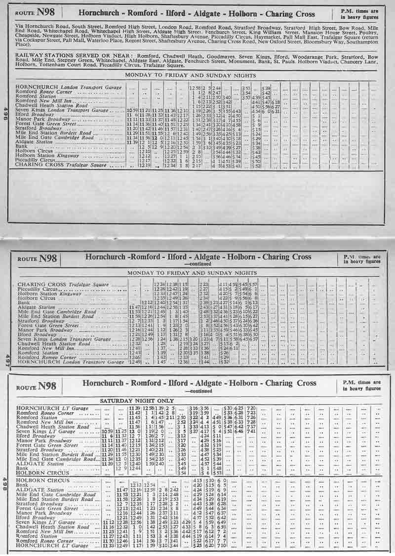 ROMFORD STATION ( Nightly ) - HOLBORN CIRCUS ( Sat night ) - TRAFALGAR SQUARE ( Sun-Fri nights )