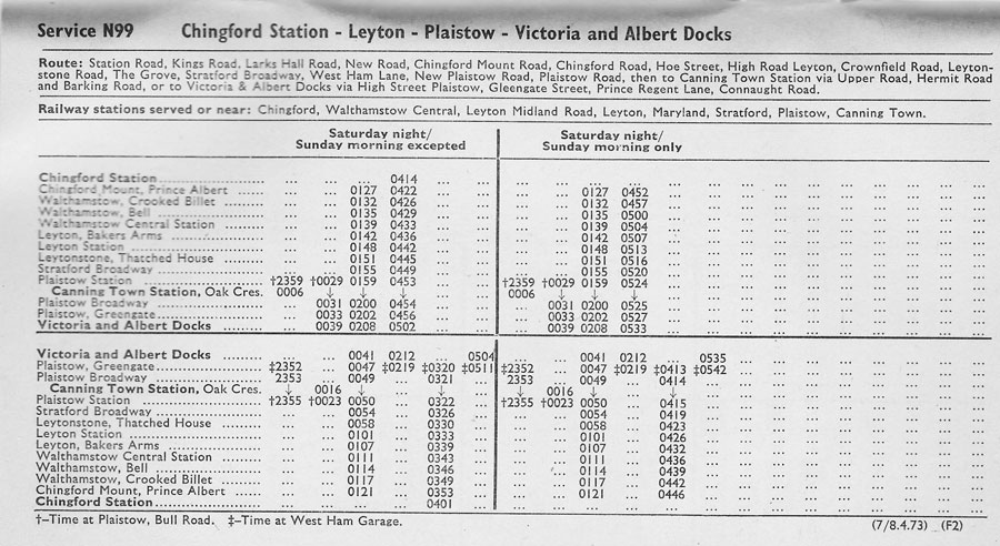 VICTORIA & ALBERT DOCKS or CANNING TOWN - CHINGFORD STATION
