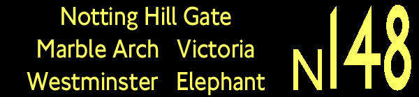 SHEPHERDS BUSH GREEN - Holland Park Avenue - Notting Hill Gate - Marble Arch - Hyde Park Corner --Victoria - Parliament Square -- Westminster Bridge -- Westminster Bridge Road - St George's Circus--Elephant & Castle - Walworth Road - Camberwell Road - CAMBERWELL GREEN Orpheus Street