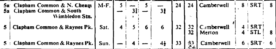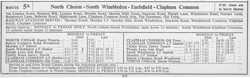 CLAPHAM COMMON Old Town - SOUTH WIMBLEDON STN ( Mon-Fri ) - NORTH CHEAM Queen Victoria( Mon-Fri peaks )