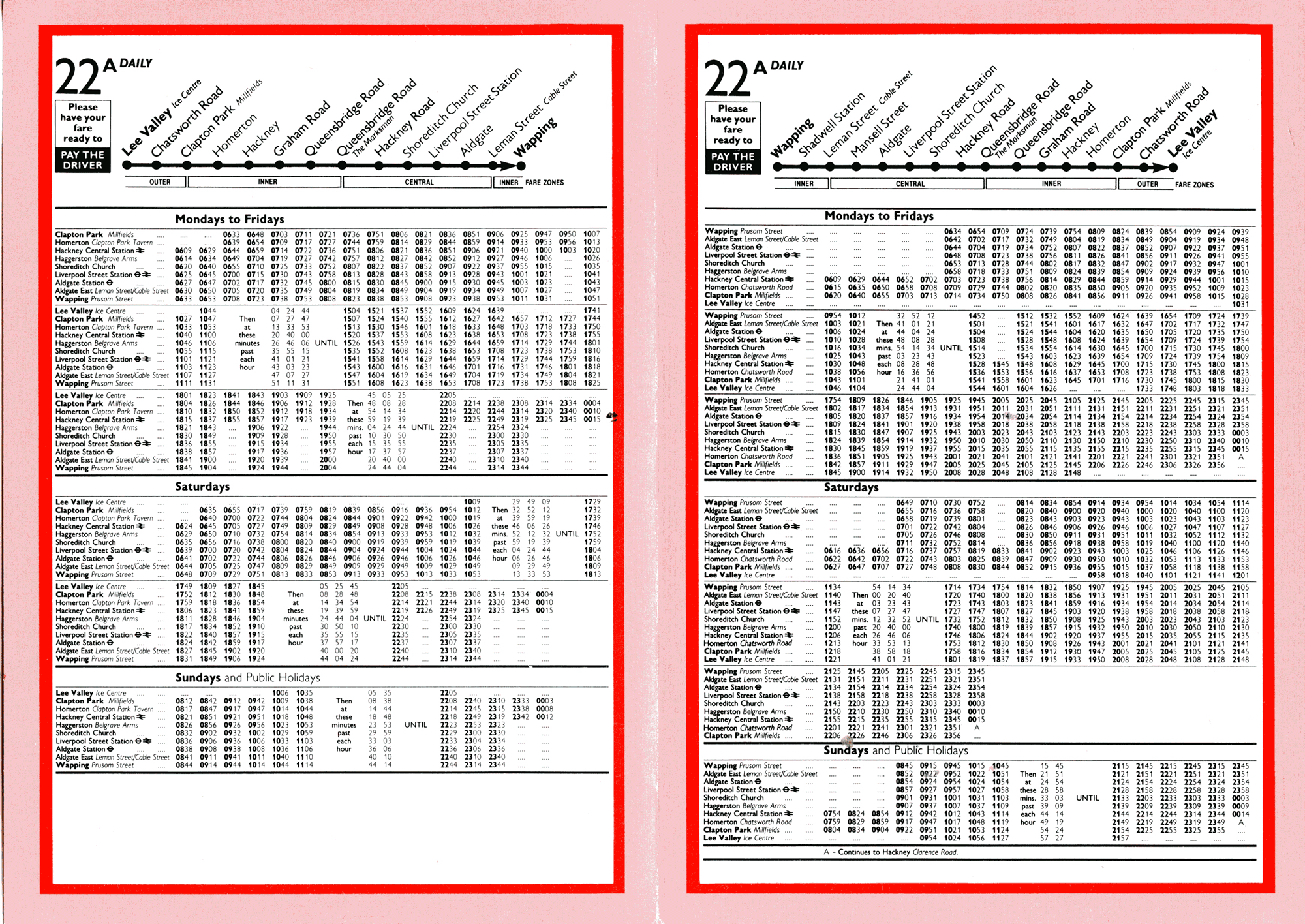 Route withdrawn - replaced by Route 242 between Clapton Park and Liverpool Street and extending Route 149 from Liverpool Street to London Bridge