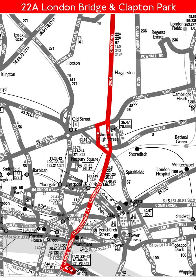 BRIDGE - Liverpool Street - Shoreditch - Kingsland Road - Dalston - Homerton - CLAPTON PARK ESTATE