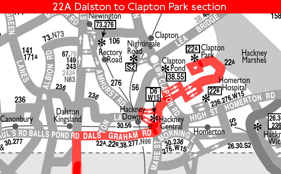 New OPO Route running parallel to Route 22 over this section, Clapton allocation reduced on Route 22 to fund this move