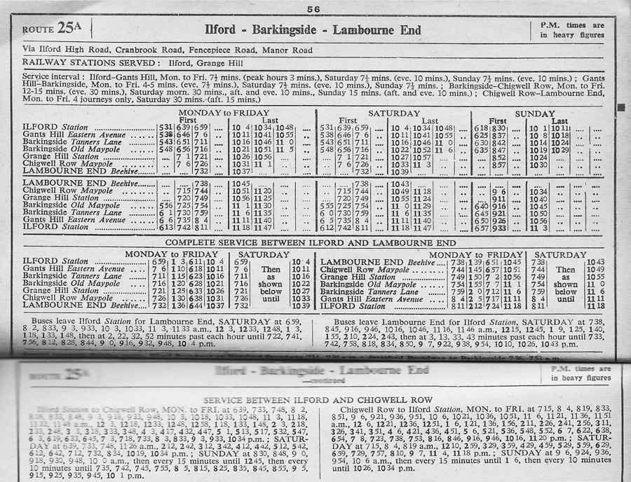 ILFORD - CHIGWELL ROW Maypole Inn ( DAILY ) - LAMBOURNE END ( Mon-Sat journeys )