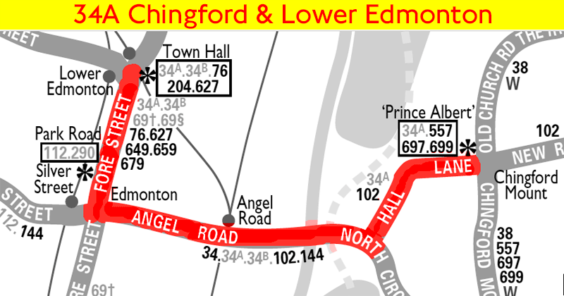 CHINGFORD MOUNT - Hall Lane - North Circular Road - Edmonton Angel - LOWER EDMONTON STATION ( Mon-Sat peaks )