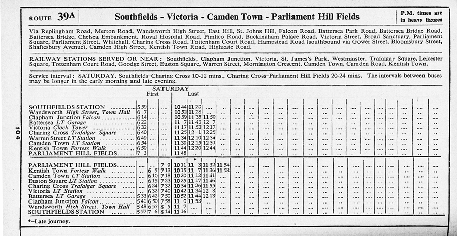 Garage journeys left line of route at Kentish Town and operated in service to Junction Road / Pemberton Gardens and then ran out of service via Pemberton Gardens and Holloway Road to garage