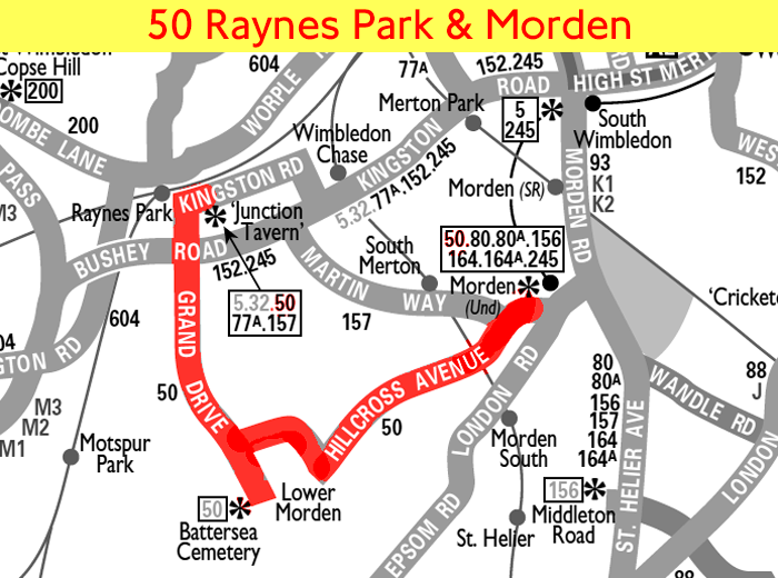 RAYNES PARK - Grand Drive - Hillcross Avenue - Morden - Wandle Road - Mitcham - Mitcham Common - Manor Road - Rowan Road - Streatham Vale - STRATHAM COMMON