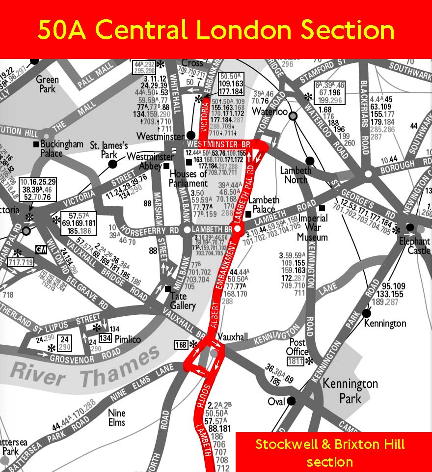 Horse Guards Avenue - Westminster Bridge - Albert Embankment - Vauxhall - Stockwell - Brixton -