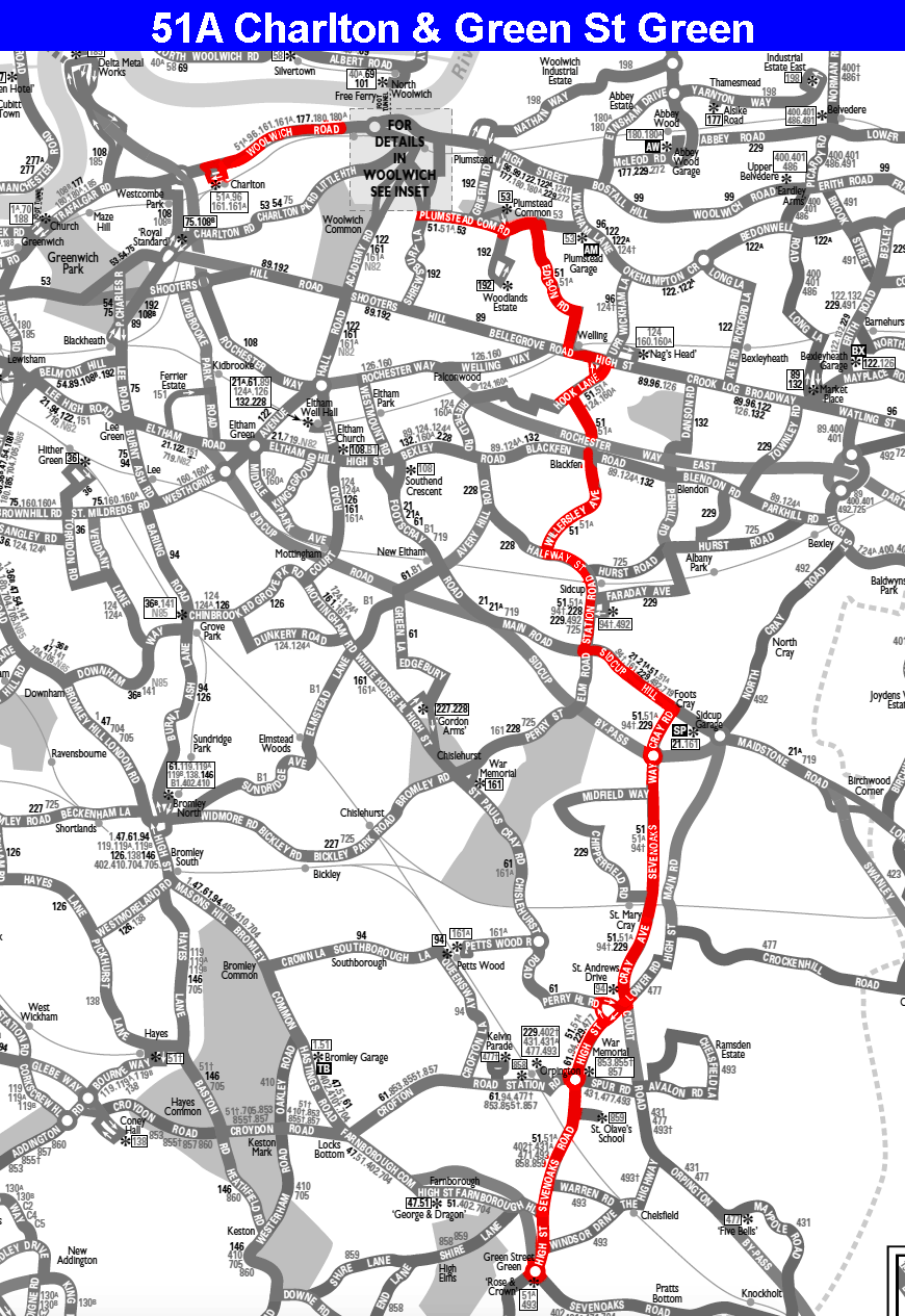 GREEN STREET GREEN - WOOLWICH Parsons Hill ( Mon-Sat ) - CHARLTON STATION ( Mon-Fri peaks )