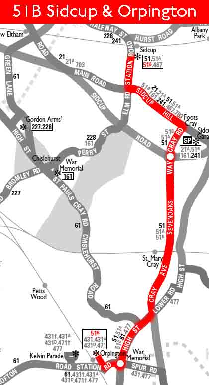 Sidcup High Street - Sidcup Hill - FOOTS CRAY (Sun) Cray Road - St Mary Cray - Orpington - ORPINGTON STATION (Daily irregular journeys )