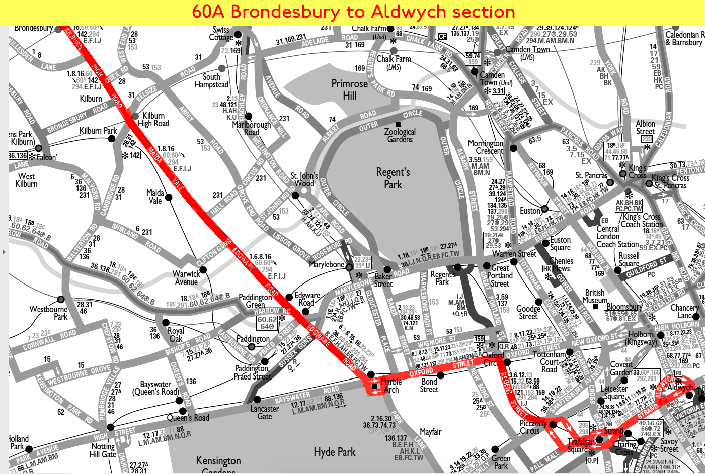 EDGWARE The Boot - Colindale - West Hendon - Cricklewood - Kilburn - Maida vale - Edgware Rd - Marble Arch - Oxford Circus - Charing † - ALDWYCH ( Mon-Sat am peak ) Renumbered from 522