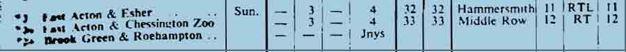 NORTH WEMBLEY ( Suns ) - EAST ACTON ( Sat pm ) - CHESSINGTON ZOO ( Sats pm / Suns )
