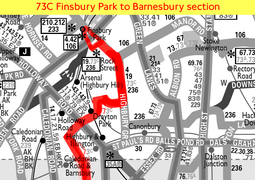 FINSBURY PARK Rock Street - Highbury Barn - Drayton Park - Barnesbury - Angel - Kings Cross - Euston -