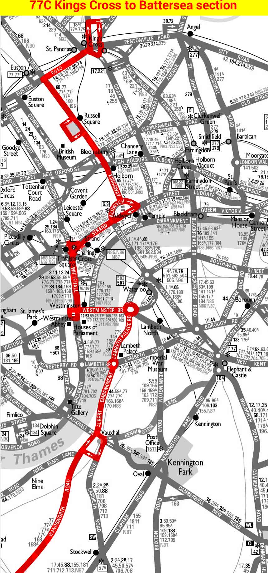 Whitehall - Westminster Bridge - Vauxhall - Wandsworth Road - Clapham Junction -