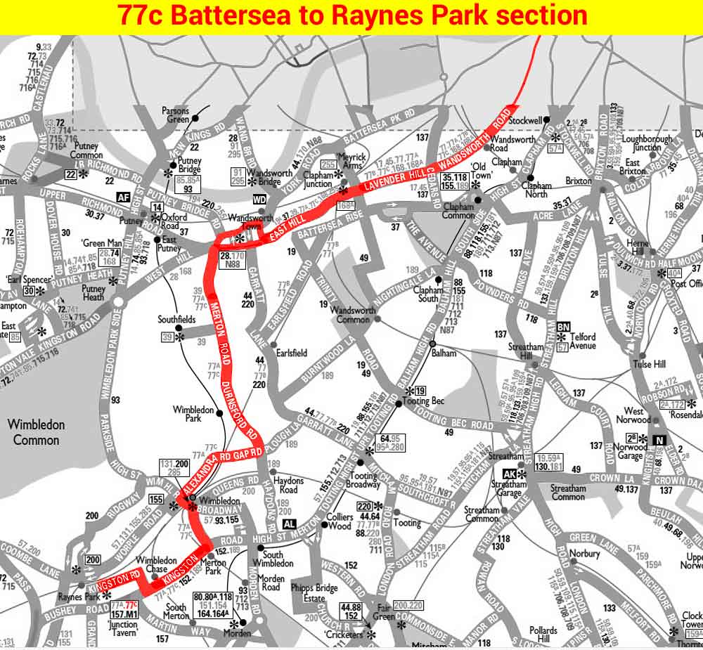 Wandsworth - Merton Road - Wimbledon Park - Wimbledon - RAYNES PARK (Sundays