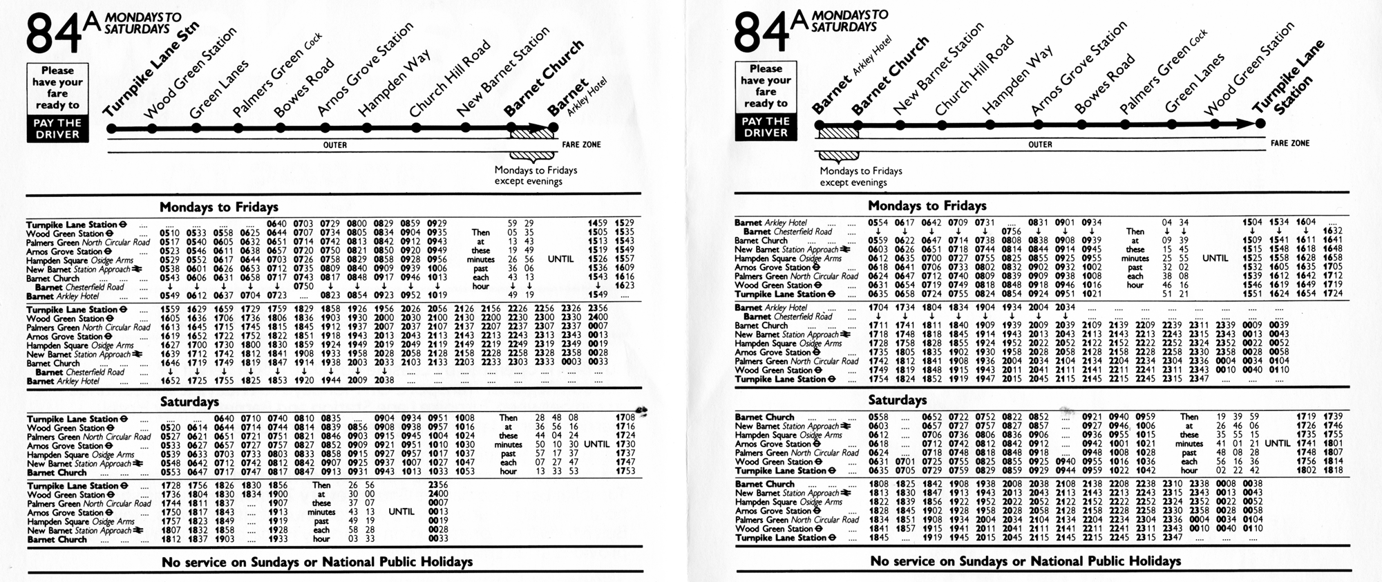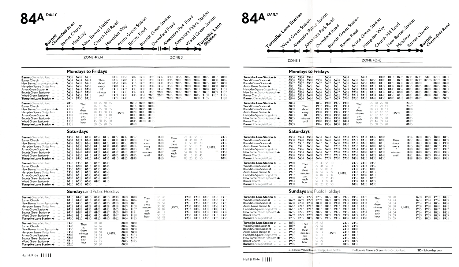 LANE STN - Wood Green - Palmers Green - Arnos Grove -- BARNET CHURCH (Mon-Sat late evgs / Sat early am) - ARKLEY HOTEL or BARNET Chesterfield Road (SDO jnys)